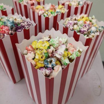 We can supply a professional Face painter, UV - Laser glow in the dark face painting parties, Glitter tattoos and festival glitter bar, Festival face gem's, Whippy Ice Cream Bar, Candyfloss bar with 30 delicious flavours, Popcorn cart with our unique multicolored, mixed flavoured popcorn, Disco bouncy castles and also celebration cakes!
